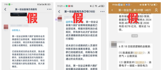 近期有不法分子假冒第一創業證券(以下簡稱我司)或我司工作人員等名義向投資者開展非法證券活動,具體表現為:不法分子通過微信、微博、電話等方式聯系投資者并邀請下載企安信、財圈社交、密樞云、快易聚及簡單對話等聊天軟件,將投資者拉入名為“第一創業學院”或“第一創業學院88群”等聊天群,以向投資者非法薦股、承諾收益等為由讓投資者直接轉賬到私人銀行卡或非法APP實施詐騙。上述行為不僅對廣大投資者的利益帶來極大傷害,也對我司的聲譽造成嚴重影響,為保護投資者利益,維護我司權益,我司鄭重提示如下: